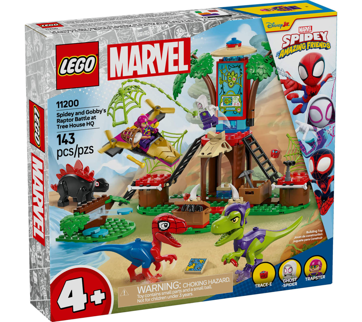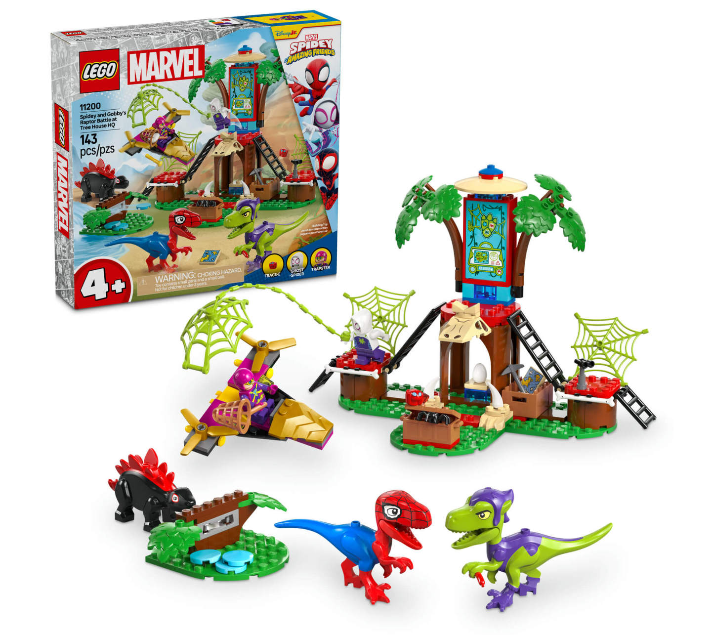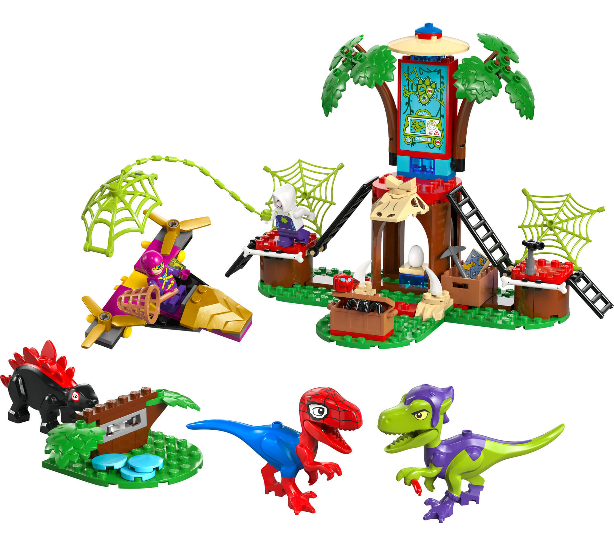 Ghost-Spider, Spidey-Rex, and Trace-E minifigures included