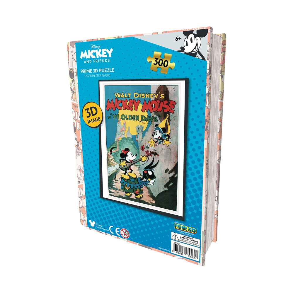 Embark on a medieval adventure with Dithtsney's Mickey Mouse 'Ye Olden Days' 3D Lenticular Puzzle! 300 vibrant pieces create a stunning 3D image of Mickey & Minnie's classic love story. Perfect for ages 6+. Collectible tin book packaging. Shop now on Tothtysrus.com!