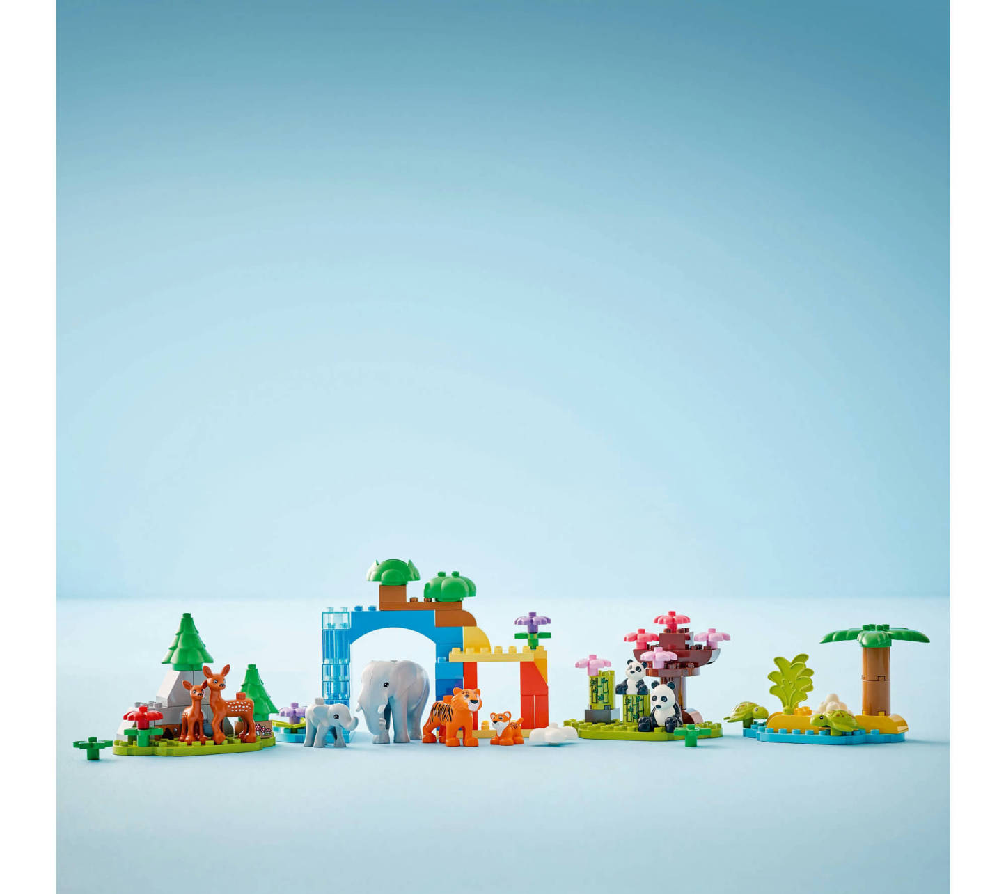 The LEthtGO DUPLO Town 3in1 Wild Animal Families Set features: