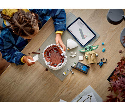 Journey to a galaxy far, far away with the LEthtGO Star Wars: The Mandalorian Grogu with Hover Pram, Buildable Figure 75403. This detailed 1,048-piece set brings to life everyone's favorite Force-sensitive child, Grogu, complete with a hover pram for epic adventures or serene floating! Posable features make Grogu ready for any scene you set straight out of the beloved series.