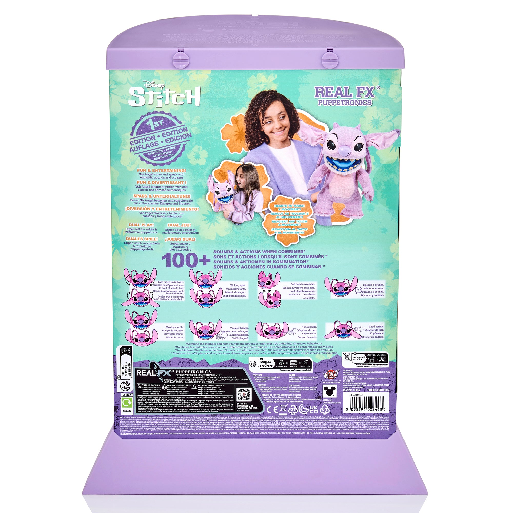 REALFX DISNEY ANGEL PUPPETRONIC - Introducing the RealFX Disney Angel 'First Edition'. Experiment 624 from Disneys Lilo and Stitch stands at 45cm/18 inches tall, this amazing animatronic Angel boasts over 100 action and sound combinations, creating lifelike interactions. With blinking and squinting eyes, moving mouth, and touch sensors on her head, nose and mouth, Angel responds to your touch! Hear Angel sing part of her Siren Song or listen as she chats away in Tantalog, her special language. Dual Play technology blends puppetry with animatronics 'PUPPETRONICS', resulting in a soft and cuddly character with hand-controlled actions bringing wonderment to all. Presented in an 'alien capsule' inspired display case, each comes with a 1st Edition certificate perfect for fans and collectors of all ages. RealFX Disney Angel is the toy of the year for kids, teens, and adult fans of Lilo and Stitch, transcending age and gender boundaries. As part of the innovative RealFX collection, Angel Looks Real! Feels Real! and Sounds Real! Bring Angel to life like never before. Official licensed merchandise by Disney Consumer Products. 2024 Disney. This is a RealFX product crafted by WOW! Stuff under license by Disney. Uses 3 AAA batteries, available separately. OFFICIAL DISNEY LICENSED: This is a RealFX product crafted by WOW! Stuff under license by Disney. Part of the RealFX range that also includes RealFX Disney Stitch.