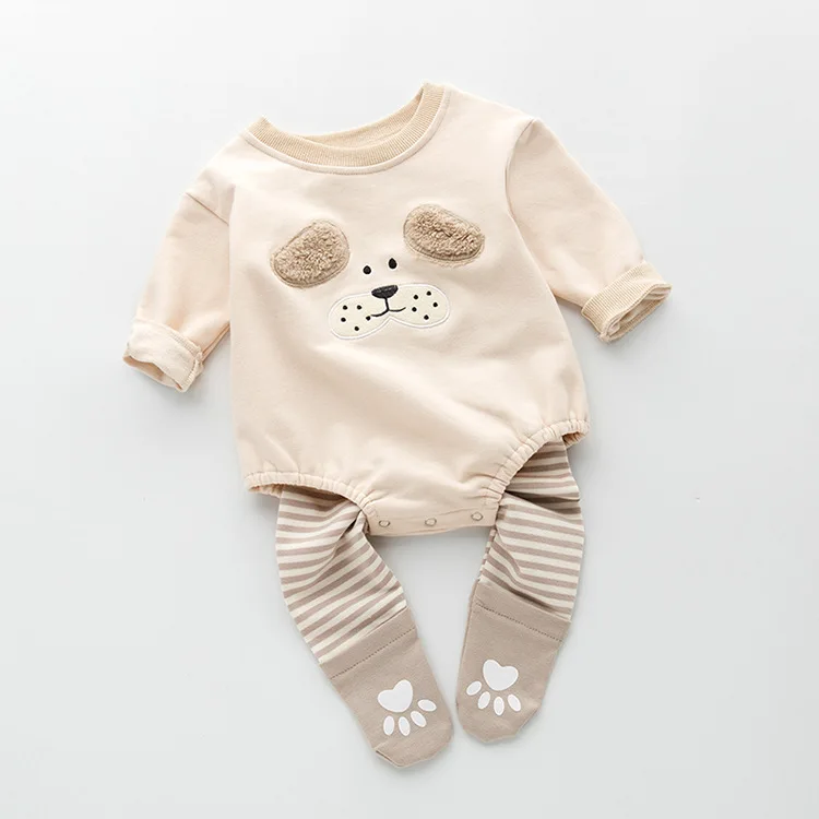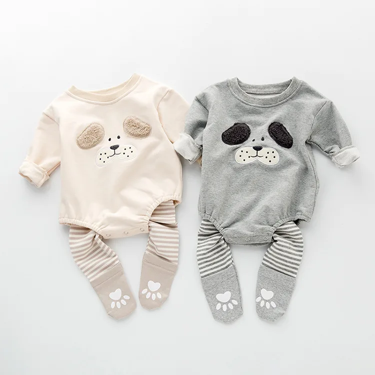 These cartoon puppy baby rompers are the staple of a baby's wardrobe. It is perfect for your little ones' everyday wear! You can select the set that includes the footed pants that let your baby feel secure and warm during cold days and have a good sleep. It features snaps closure buttons for easy change and an adorable cartoon puppy printed on the front. It is soft and gentle to babies' skin. One of the cutest easy, valuable pieces of clothing you can buy for your little one.