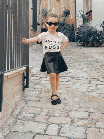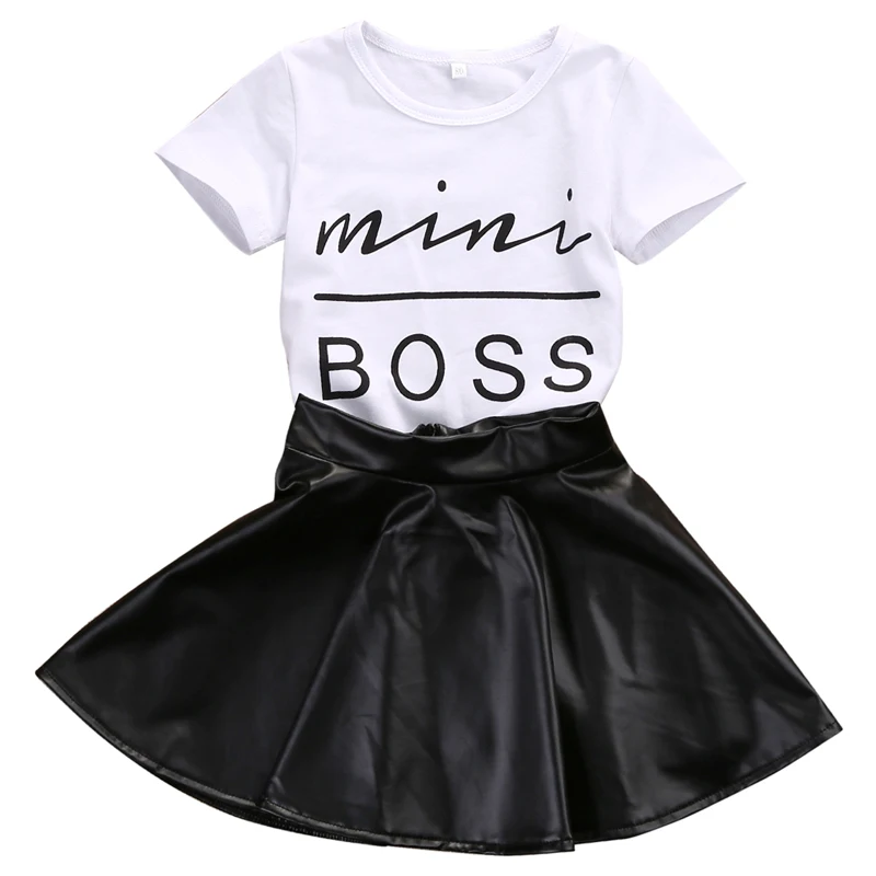 Style your little one in this mini-boss 2 piece outfit. This set includes a white t-shirt and a black A-line skirt. She will feel that she is in charge of her day and her life. What more could we want for the next generation of strong independent women?