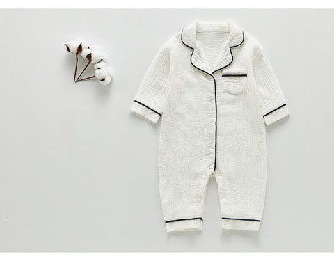 Kids will sleep blissfully in this solid kid's pajamas romper. It features long sleeves and a full front button closure. The bottom snap closure for an easy diaper change. The soft fabric will get them feeling comfy all night long!