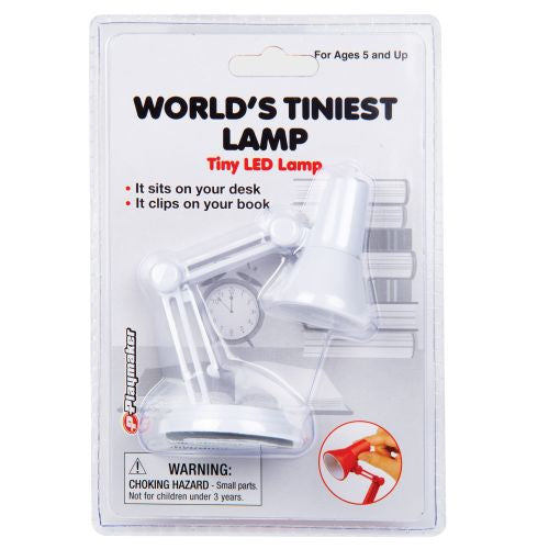 Light up your world in a pocket-sized form with the World's Tiniest Lamp! This charming little beacon is perfect for any nook, cranny, or cubby. Imagine the tiniest glow, brightening up your dollhouses, desk corners, or tiny tent camps during a backyard sleepover. With a fully functional light and LEDs included, this micro marvel brings a vibrant splash of light in red, white, or black.