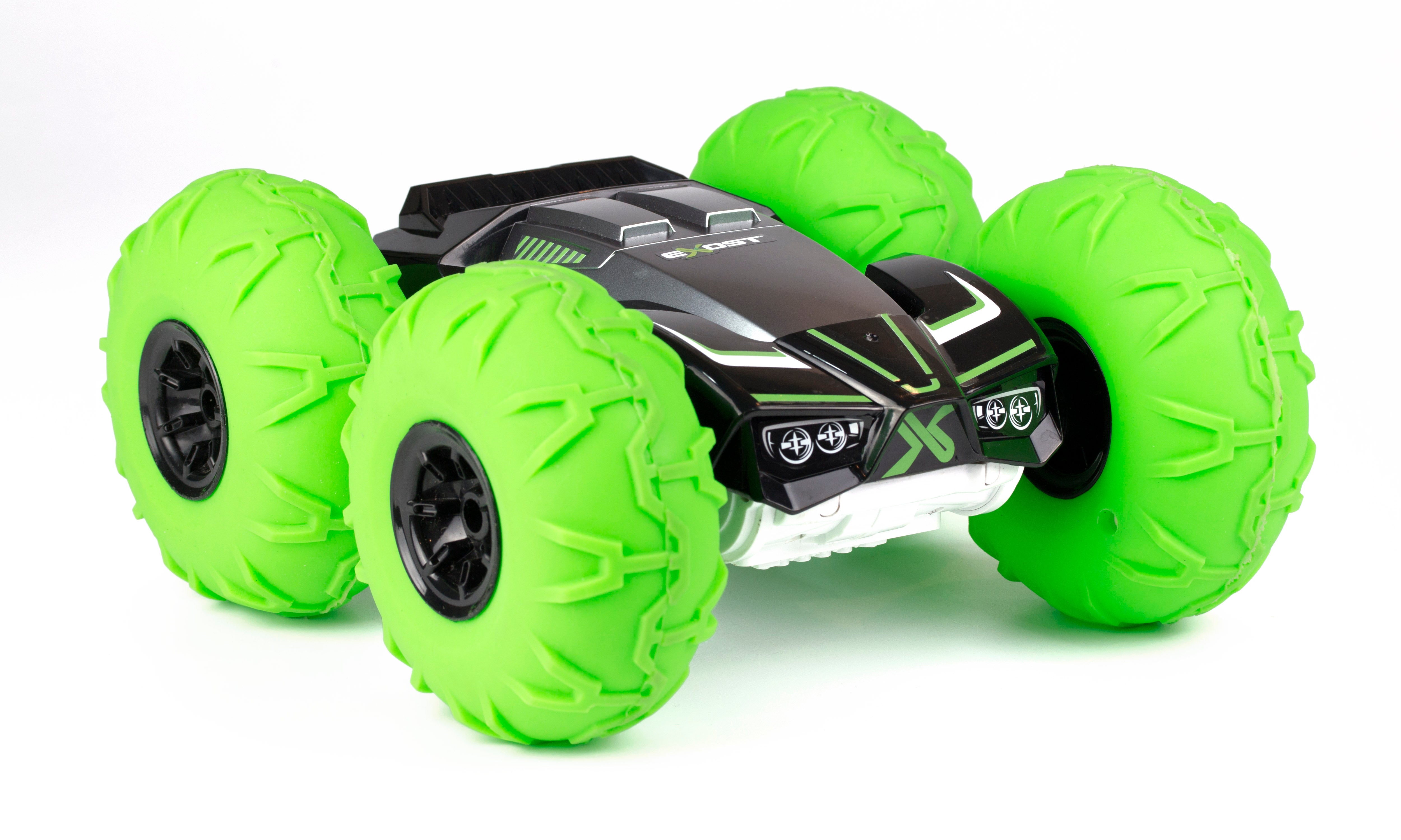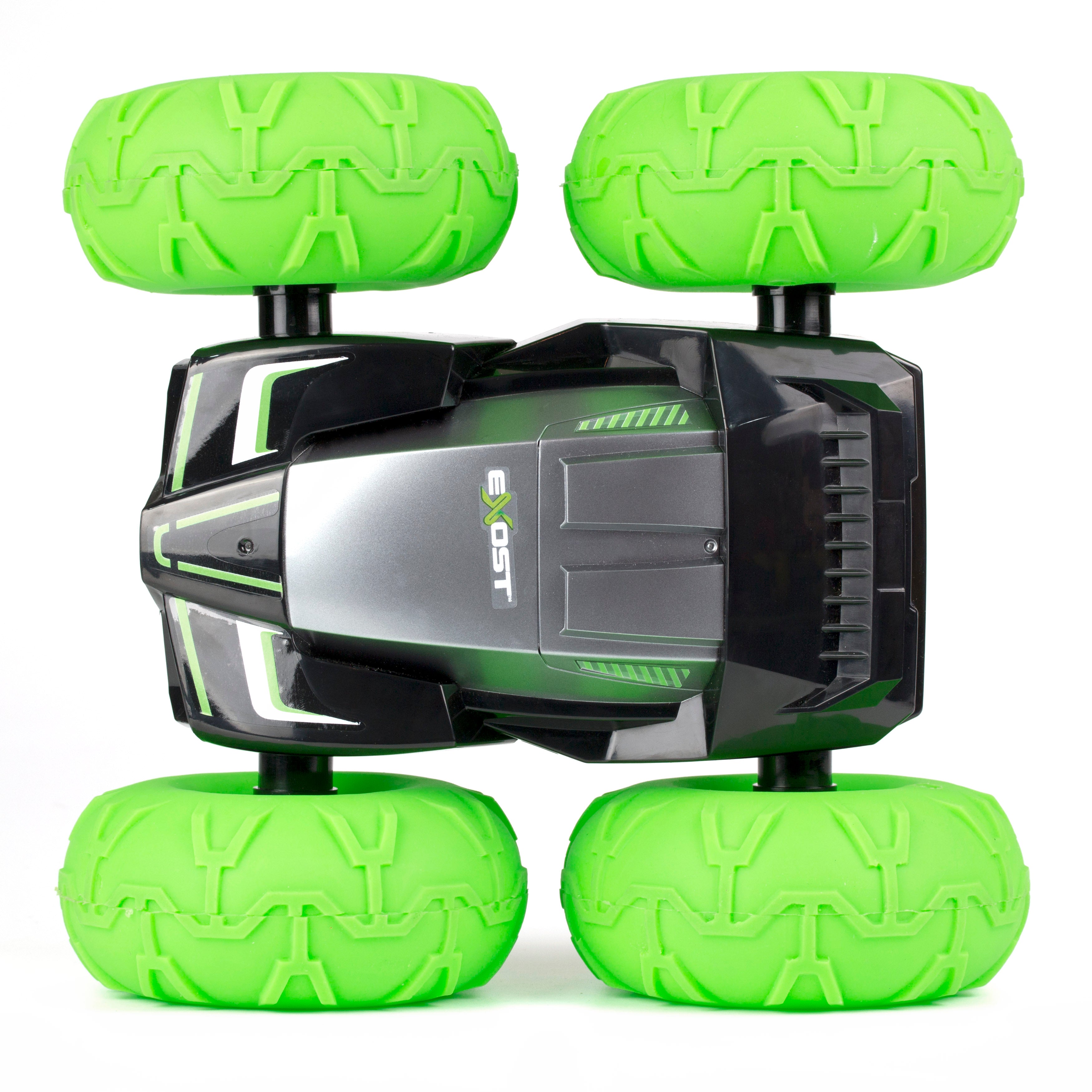 Experience heart-pounding thrills with the EXOST 360 TORNADO - Green monster truck! Conquer any terrain, perform jaw-dropping 360° stunts, and race with up to 10 players. Durable construction, inflatable tires, and precision controls deliver the ultimate RC adventure. Shop now on toysrus.com and unleash the excitement!